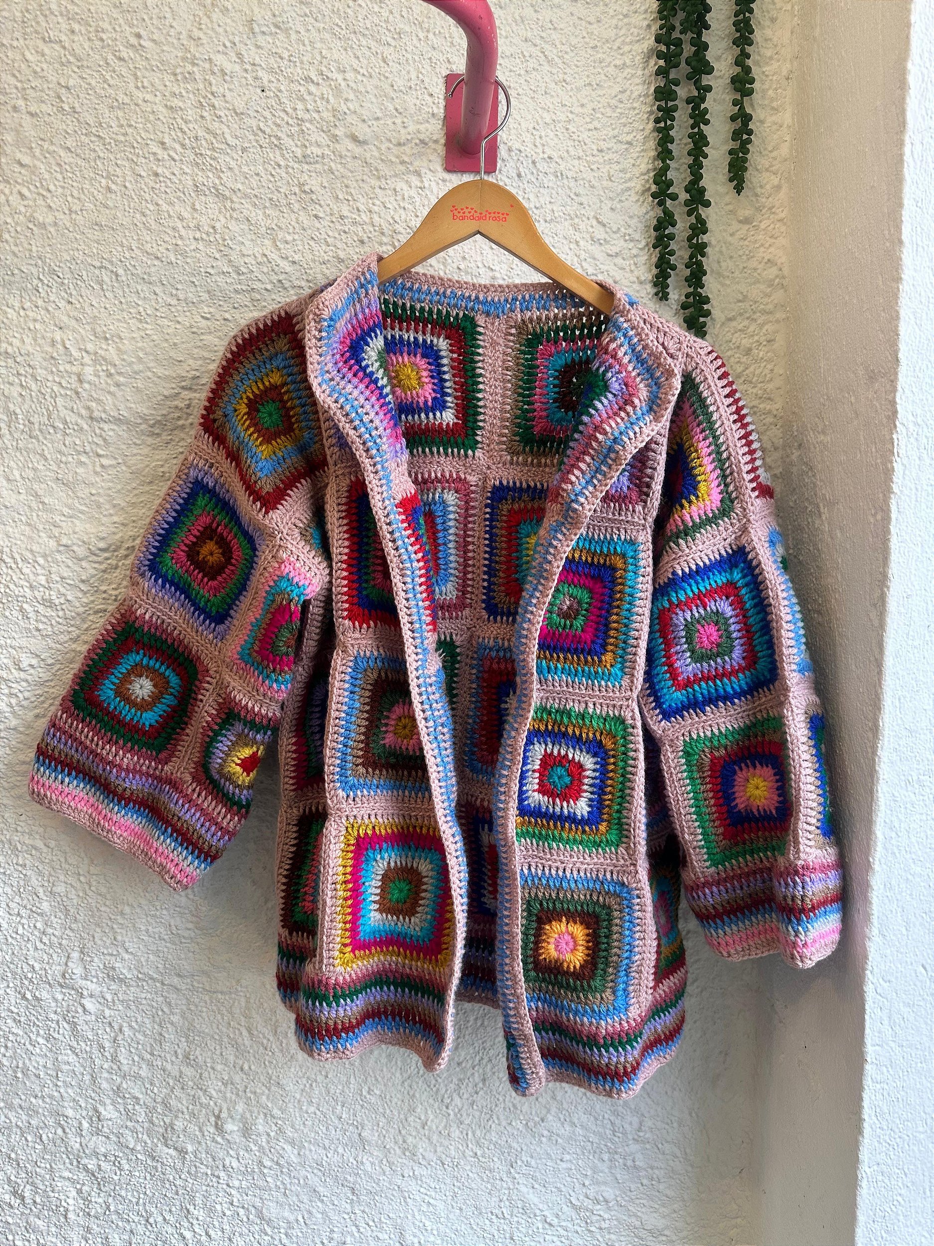 Feito com todo o carinho e talento das mãos da nossa tia-avó, este casaco é mais do que uma peça de roupa — é um pedacinho de afeto tecido ponto a ponto.